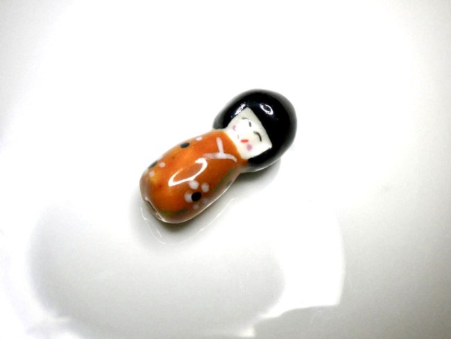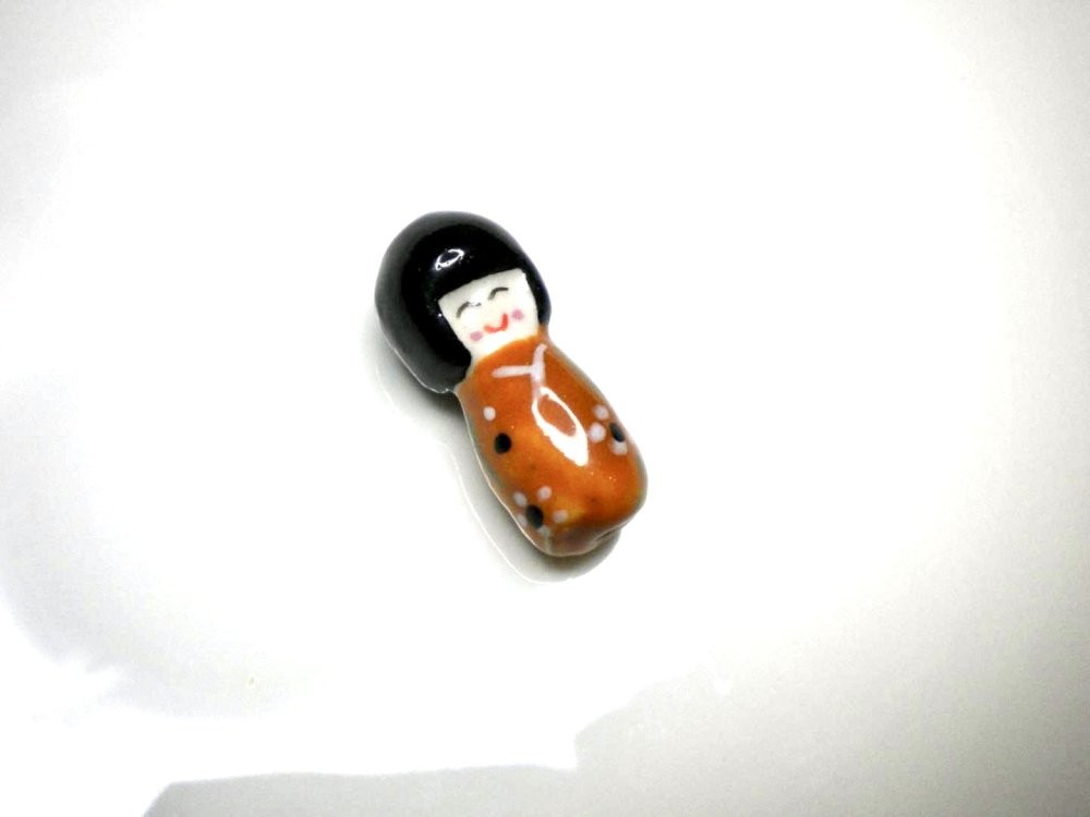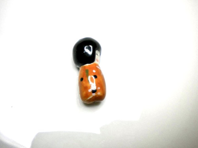 Cette poupée chinoise est en porcelaine orange et mesure 30x13 mm.