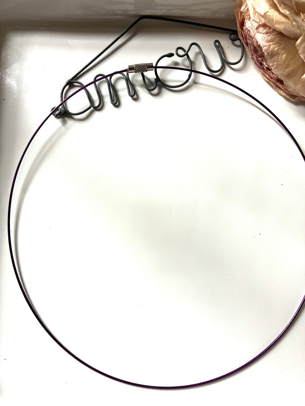 Ce collier jonc tour de cou en fil câblé violet mesure 14,5 cm de diamètre. Avec un fermoir dévissable. Garanti sans nickel. D'autres coloris en boutique, dans la rubrique support collier ! Bonne visite