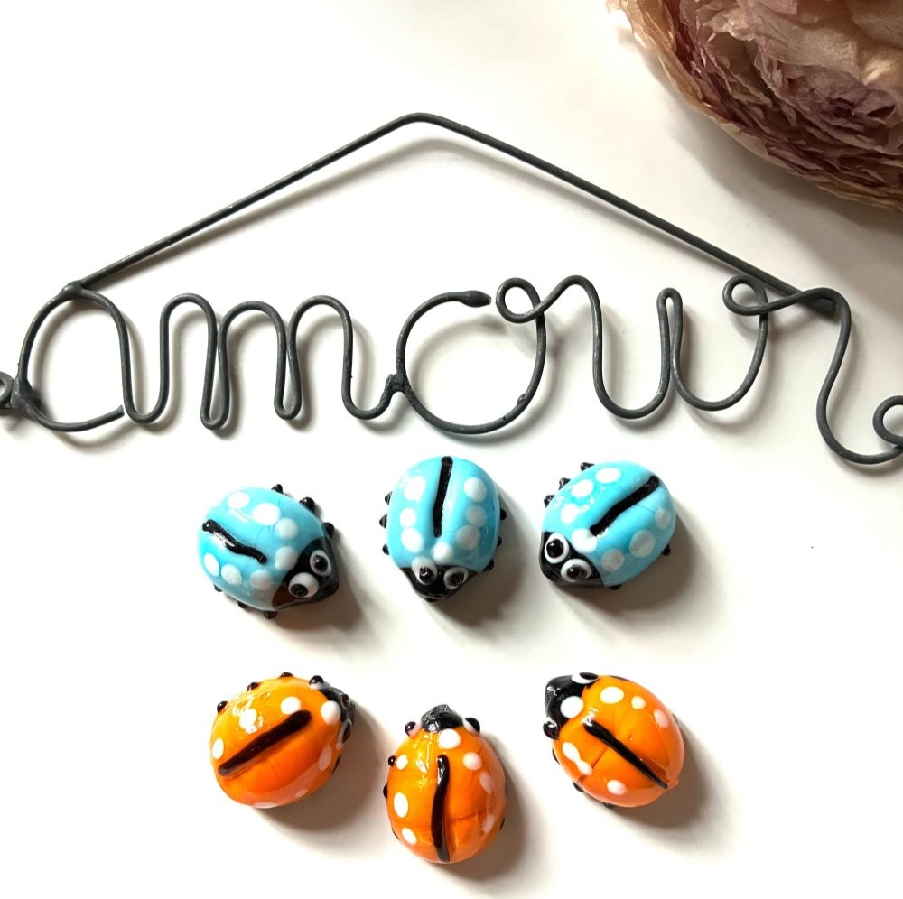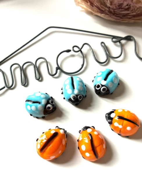 Ces six perles plates et trouées en forme de coccinelles mesurent 19x16x10mm, d'autres coloris en boutique