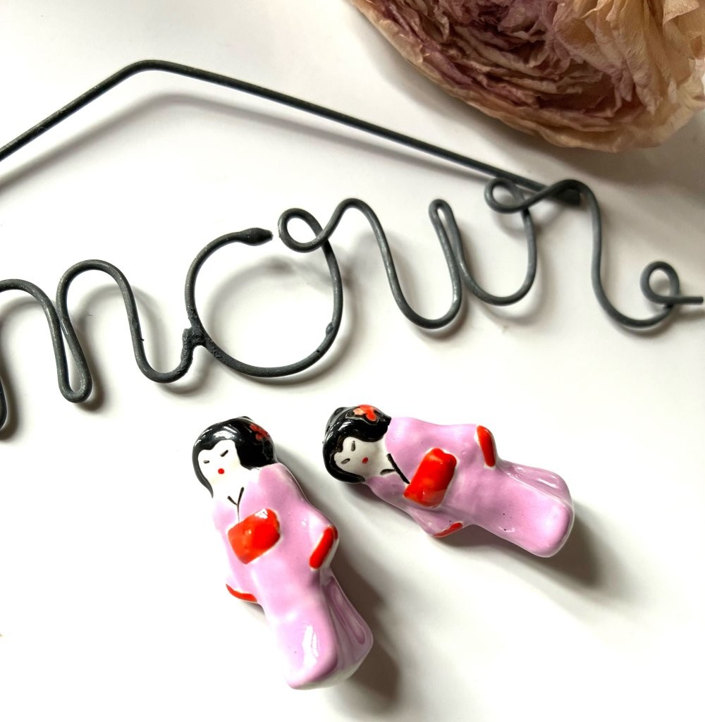 Duo de poupées japonaises en céramique 30x13mm en rose