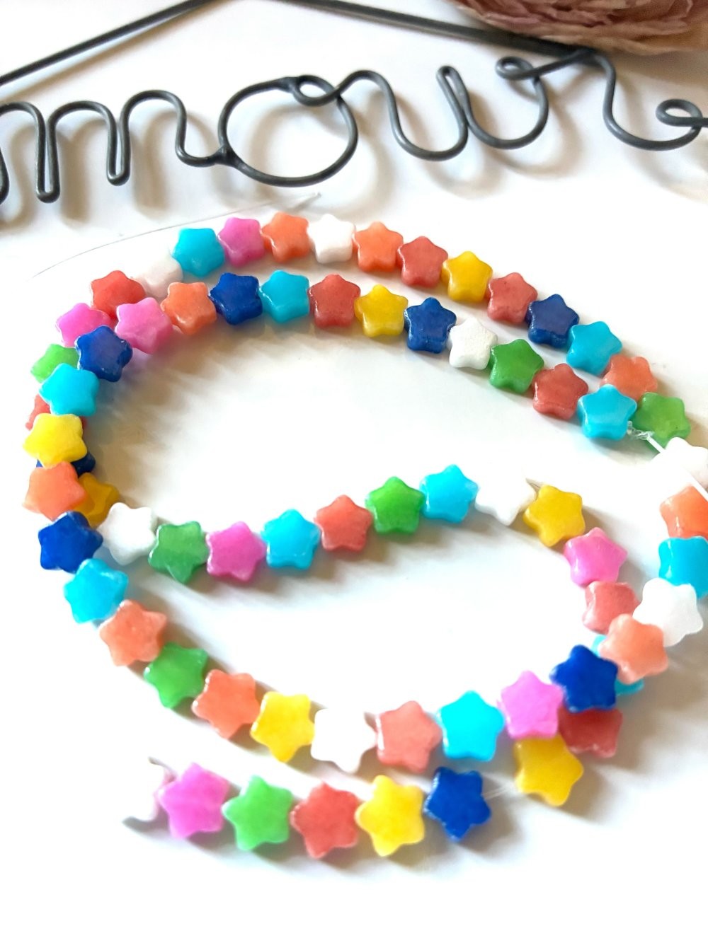 Lot de 70 mini perles étoiles en jade teintées
