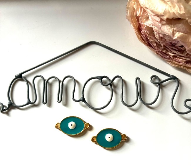 Perles métal doré et résine verte oeil de la chance