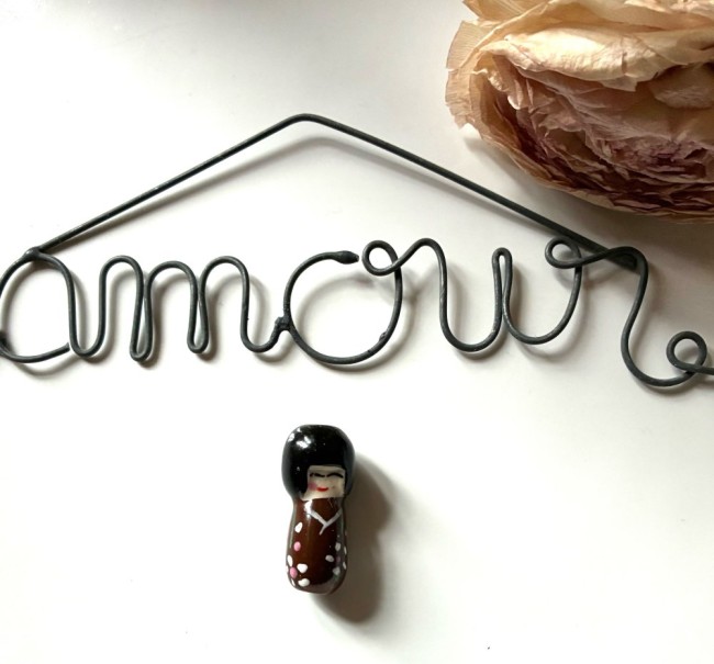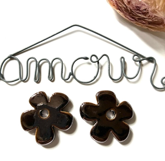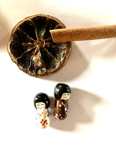 Lot 2 perles en porcelaine poupée chinoise kokeshi en marron