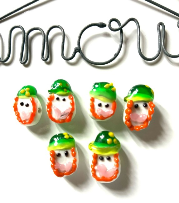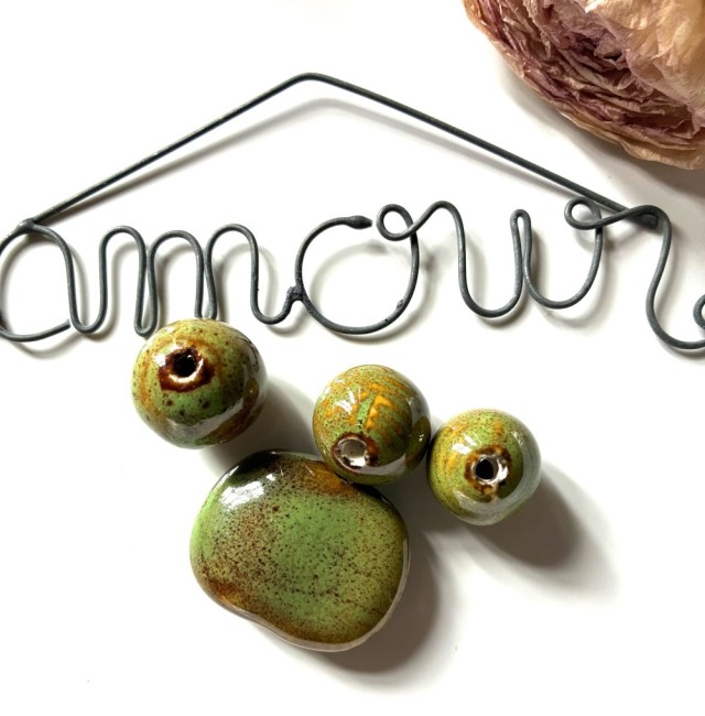 Lot 2 perles en porcelaine poupée chinoise kokeshi vert et orange