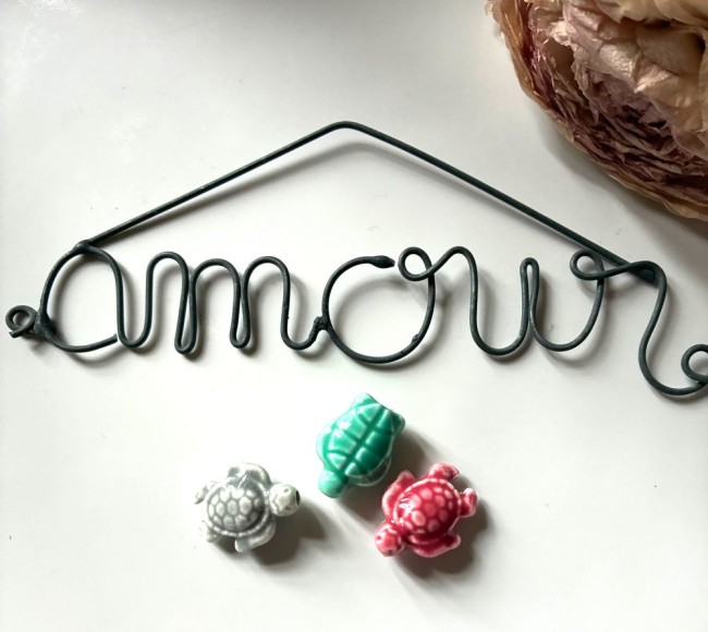 3 tortues en céramique 18mm en rose, gris et turquoise