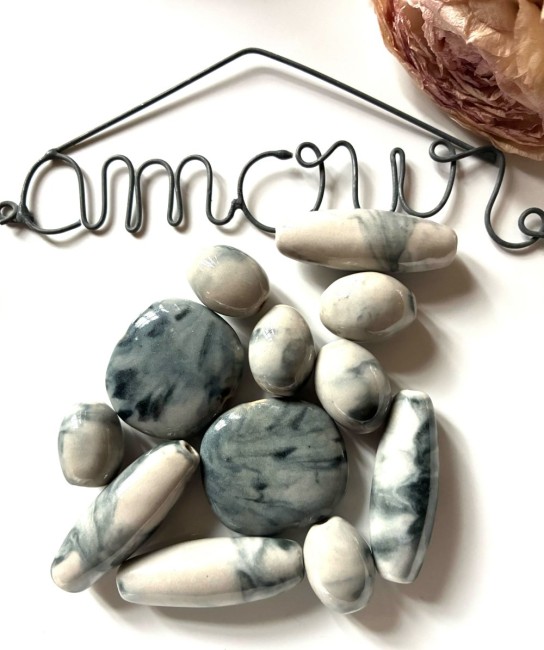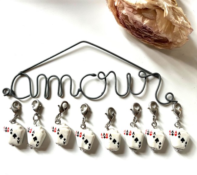 Cartes à jouer en céramique avec fermoir mousqueton - lot de 8