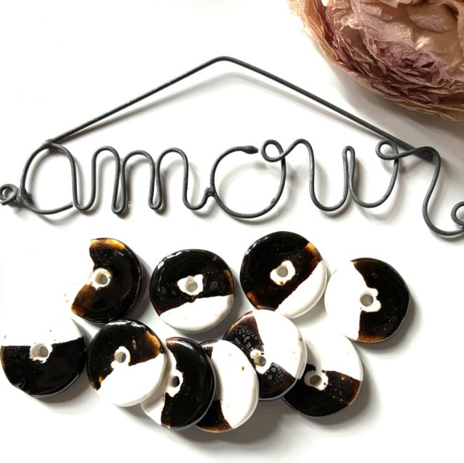 Lot 2 perles en porcelaine poupée chinoise kokeshi blanc et marron